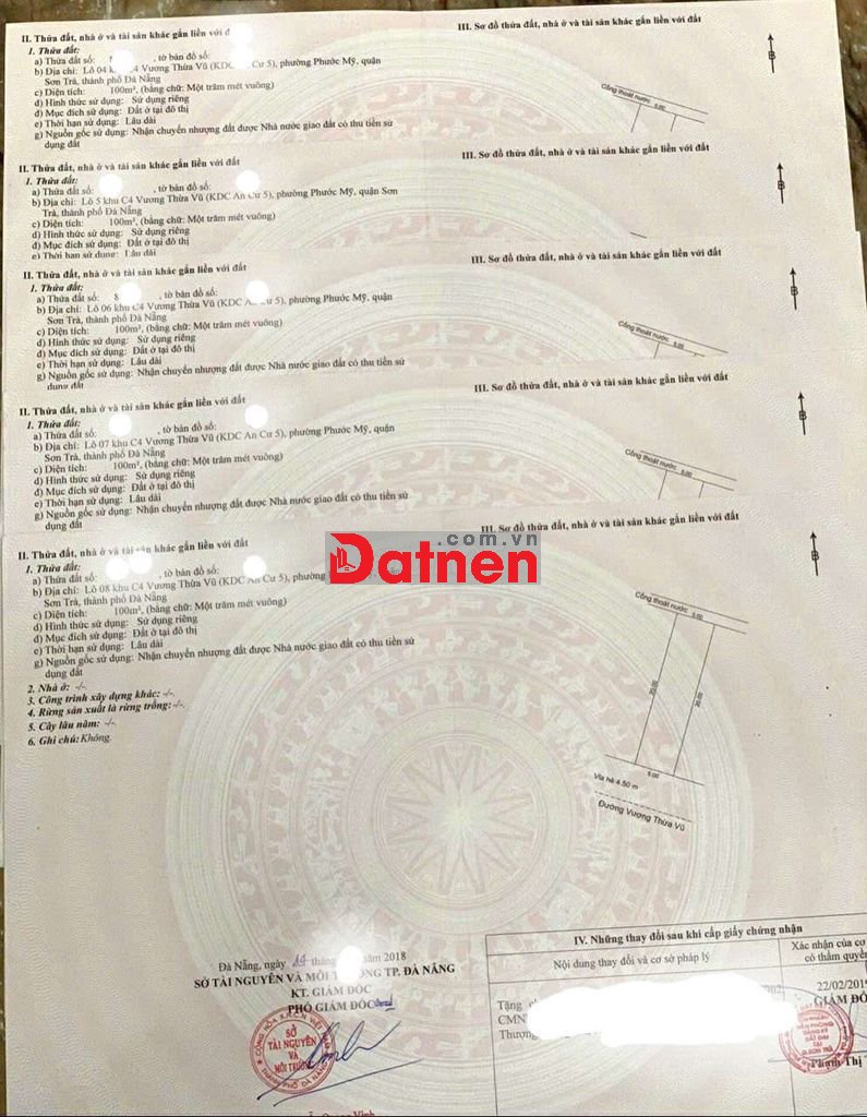 Chính chủ cần bán 5 lô đất liền kề đường Vương Thừa Vũ. Phường Phước Mỹ . Sơn Trà. Đà Nẵng .