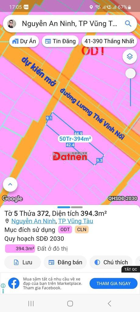 Diện Tích 394m² ngang 9,05m dài 44m , khu BT cao cấp cán bộ ,công chức ở ,nên rất an ninh yên tĩnh không có homesaty không ồn ào ,thích họp xây biệt thự nghĩ dưỡng .....