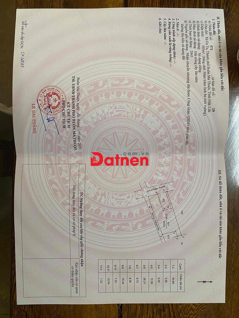 Đất 2 mặt tiền 680m2 nằm ở hẻm 242 dã tượng ( Liên Doanh 1 cũ ) , Diện tích 17x40 thổ cư 170m2