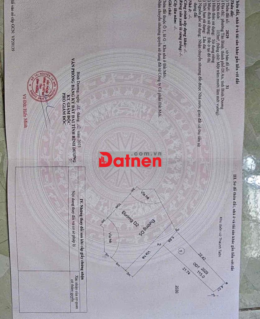 - Diện tích 115m2 thổ cư 100% đường nhựa vỉa hè cây xanh.
