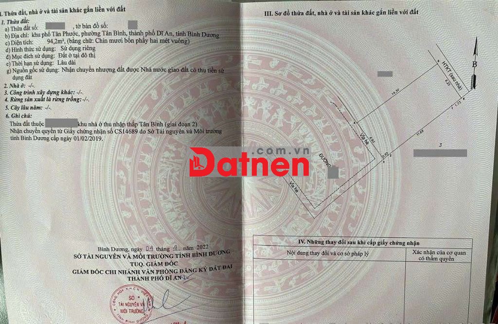 Đất 3,3 tỷ TL- 94.2m2 (ngang 6.93m).