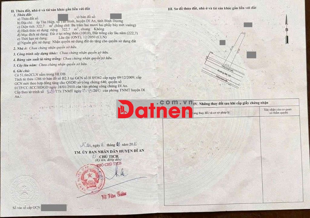 Đất 7,8 tỷ TL- 322m2 ngang 8.7m Thổ cư 100m.