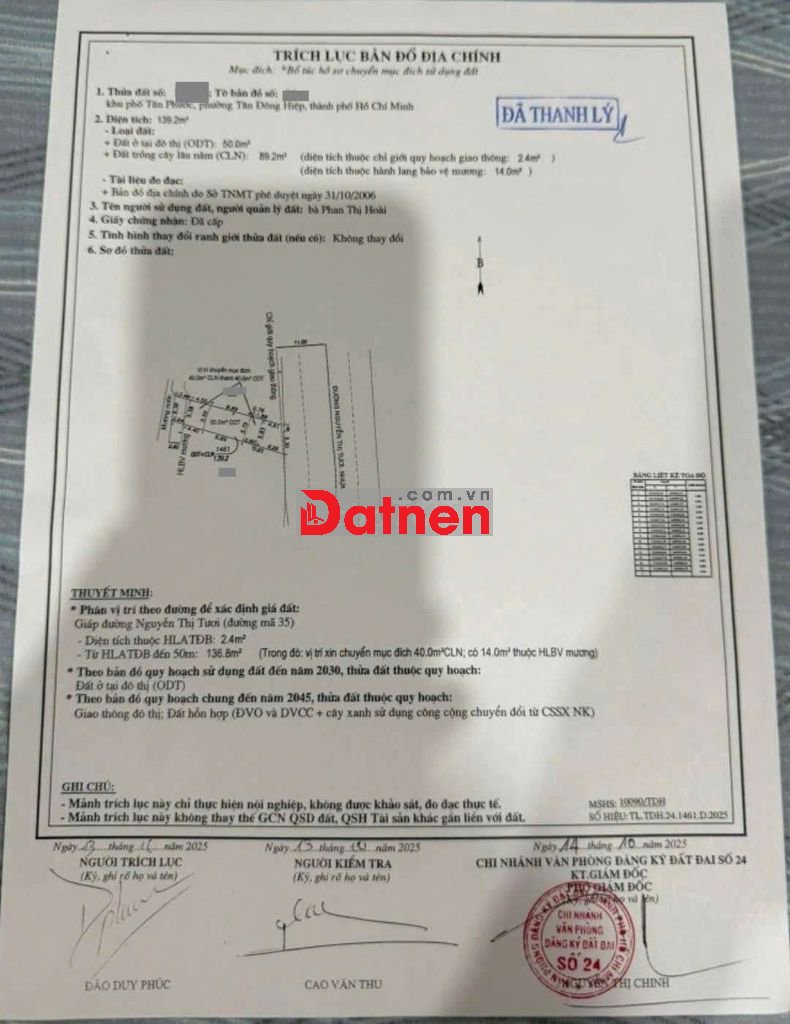 Đất mặt tiền kinh doanh Nguyễn Thị Tươi, phường Tân Bình, TP Dĩ An.