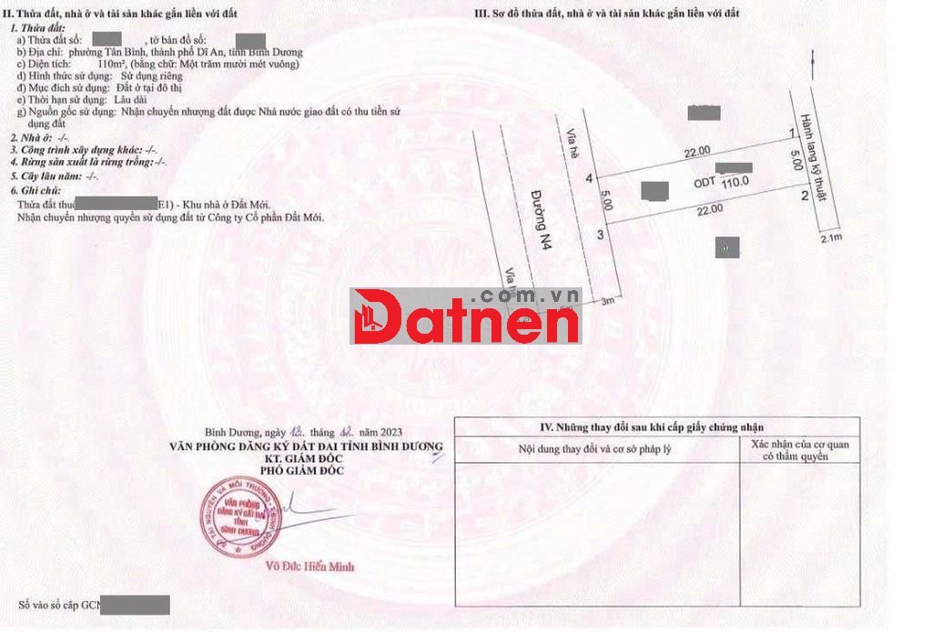 Đất 3,65 tỷ TL- 110m2 (5x22m).