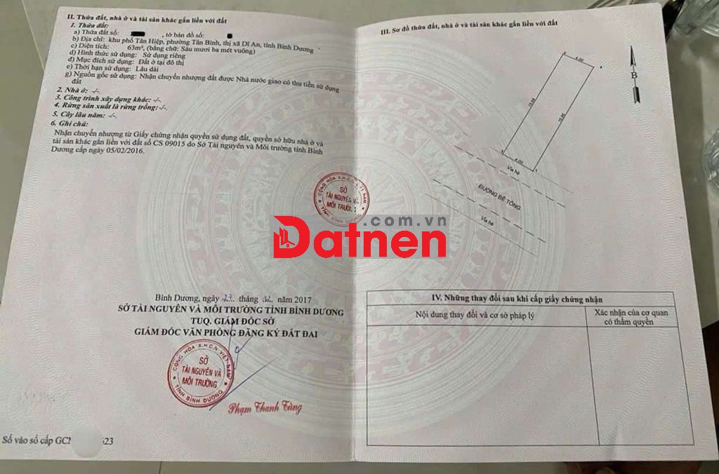 Đất khu Hố Lang, phường Tân Bình, TP Dĩ An.