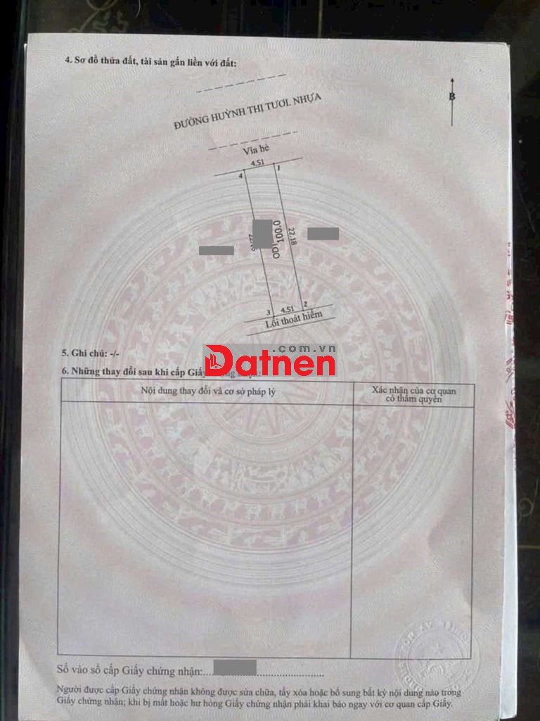 Đất 4.45 tỷ TL 100m ngang 5x20m thổ cư 100%