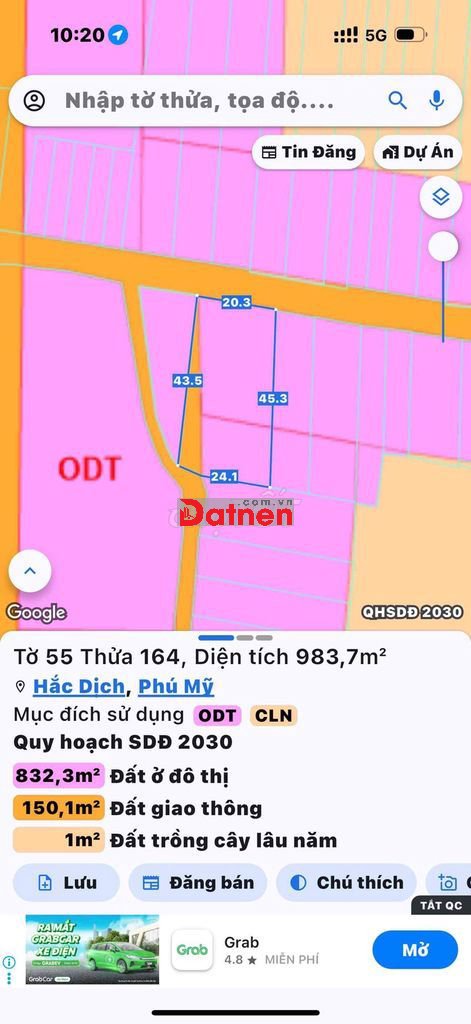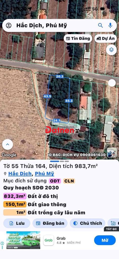 - Diện tích: 900m2 (Ngang 20m x Dài 45m).