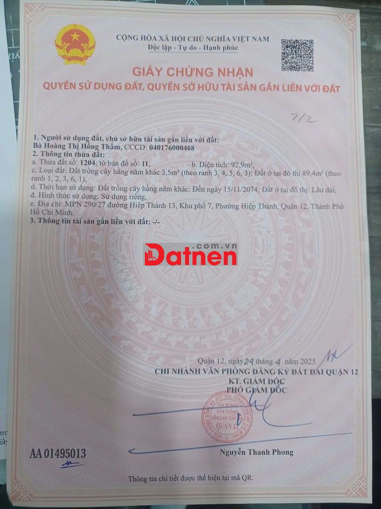 Địa chỉ 67-69 đường Hiệp Thành 14, P. Tân Thới Hiệp, Tp HCM.