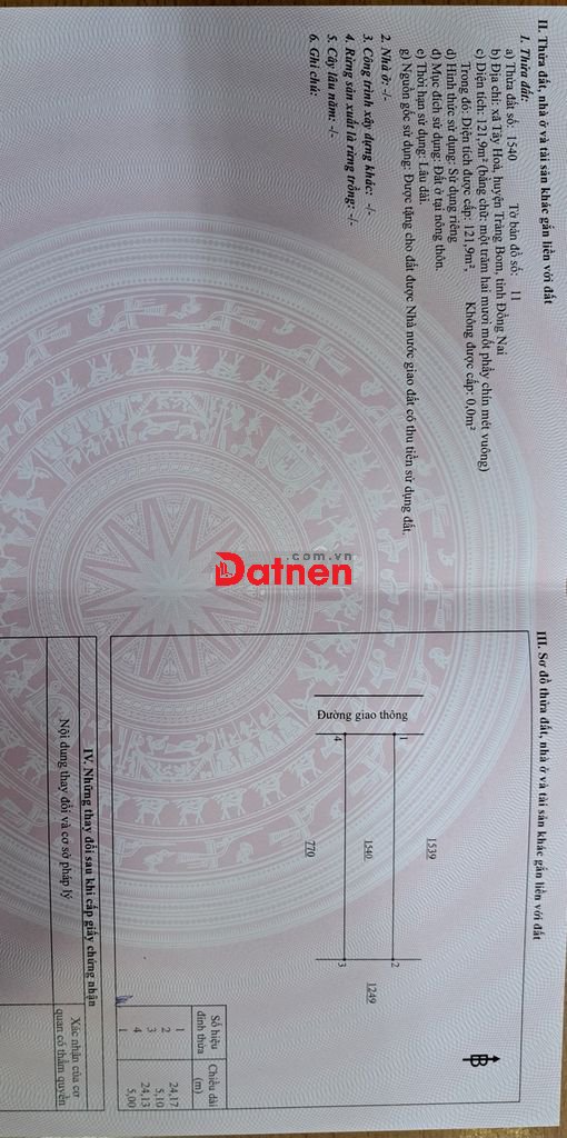 Đất vườn trồng cây dầu được 15 năm tuổi,có nhà cấp 4 rộng rãi đầy đủ tiện nghi, sân vườn,nhà trà...dân cư xung quanh thân thiện, đường rộng 8m, vị trí cách trung tâm tp biên hòa 7-8km, bán kính 1km đầy đủ tiện nghi (chợ,siêu thị, trường học, bệnh viện....). Thuộc P. Tân Triều TP.Biên hòa.