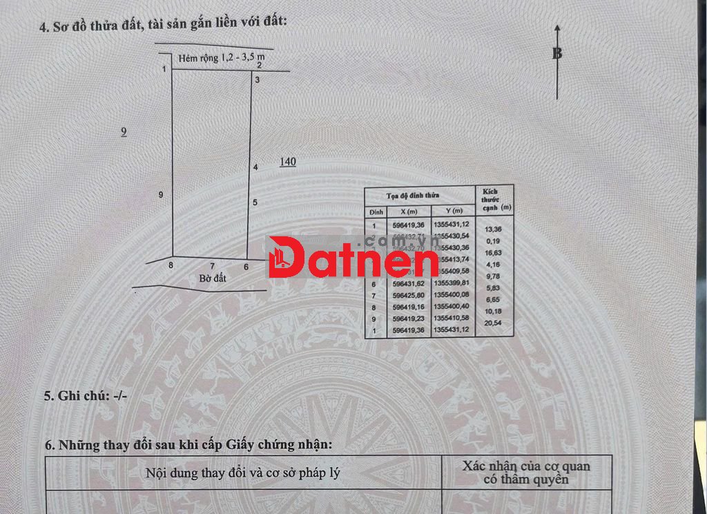 Diện tích đất 396,9m2 , trong đó có 152,4 m2 thổ cư
