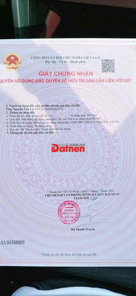📍 Trung tâm hành chính Củ Chi – mặt tiền đường nhựa 12m, thông tứ hướng