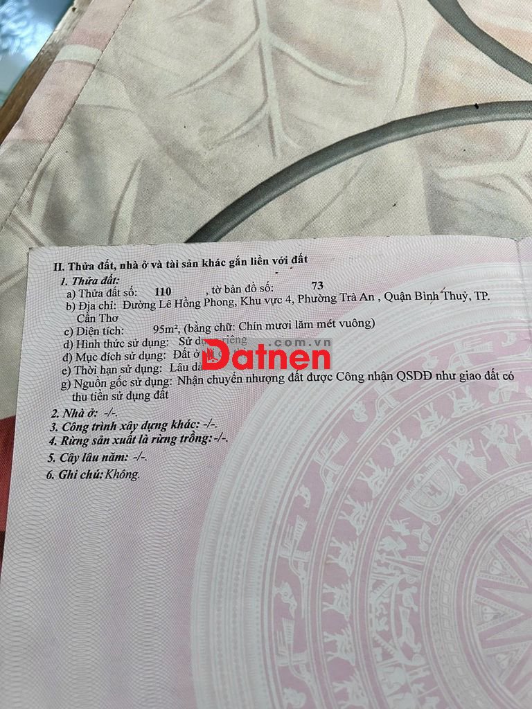 Quý vị đang xem nội dung tin rao "Bán nền thổ cư đường Lê Hồng Phong, Quận Bình Thủy, TP Cần Thơ". Mọi thông tin, nội dung liên quan tới tin rao này là do người đăng tin đăng tải và chịu trách nhiệm. Datnet.com.vn luôn cố gắng để các thông tin được hữu ích nhất cho quý vị tuy nhiên Datnet.com.vn không đảm bảo và không chịu trách nhiệm về bất kỳ thông tin, nội dung nào liên quan tới tin rao này.