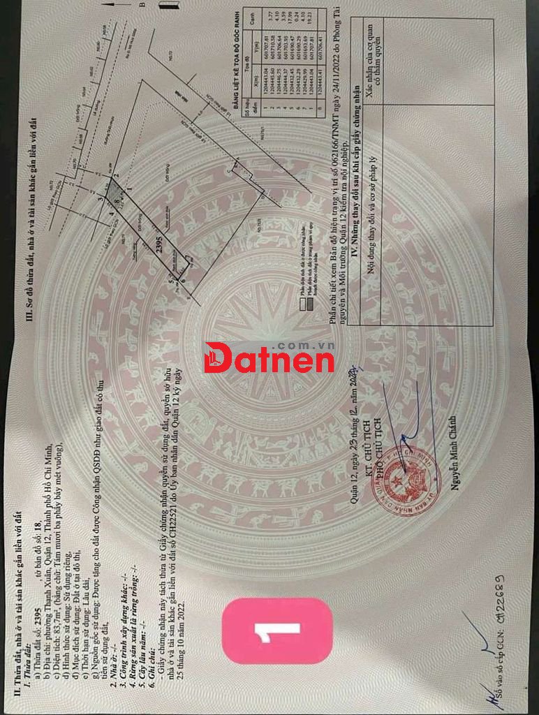 - DT lô 1: 83.7m2 ngan 4.1m X dài 21m, Full thổ.