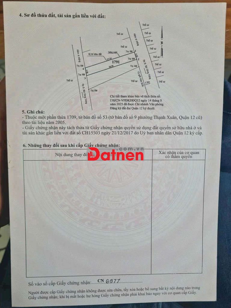 ĐẤT SHR 4X28M 111M2. HẺM 7M CHS2 THẠNH XUÂN 52