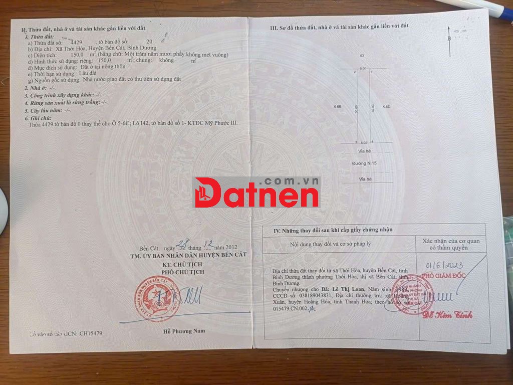 Nhà Đất Mai Hải. Đường Di4, KP1, Thới Hòa, Bến Cát, BD( Nay là TP. HCM)