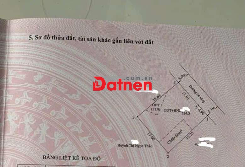 Diện tích : 16 × 19 thổ cư 82m ( tổng diện tích 324m2 )