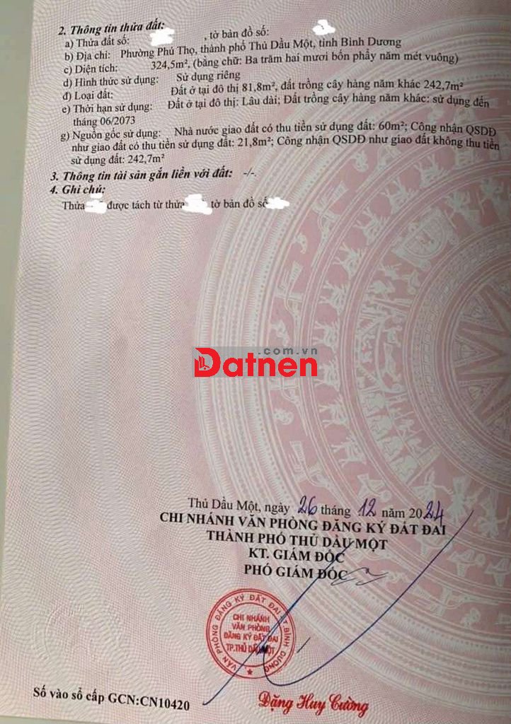 Bán Đất Phường Thủ Dầu Một Bình Dương