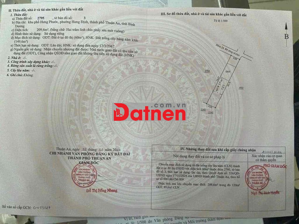 Cách nhà thờ Búng 200m Hưng Định- Thuận An bê tôg thông 4m có lô đất xây trọ ok