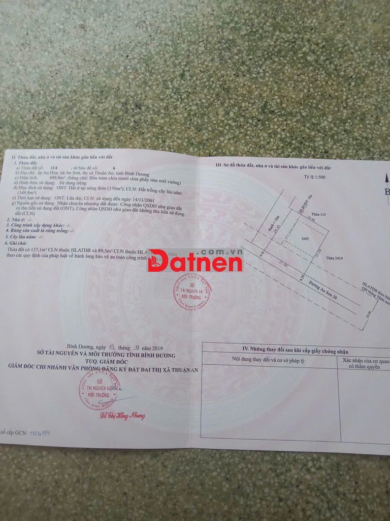 Bán 5.00 m An Sơn 38 Thuận An Bình Dương