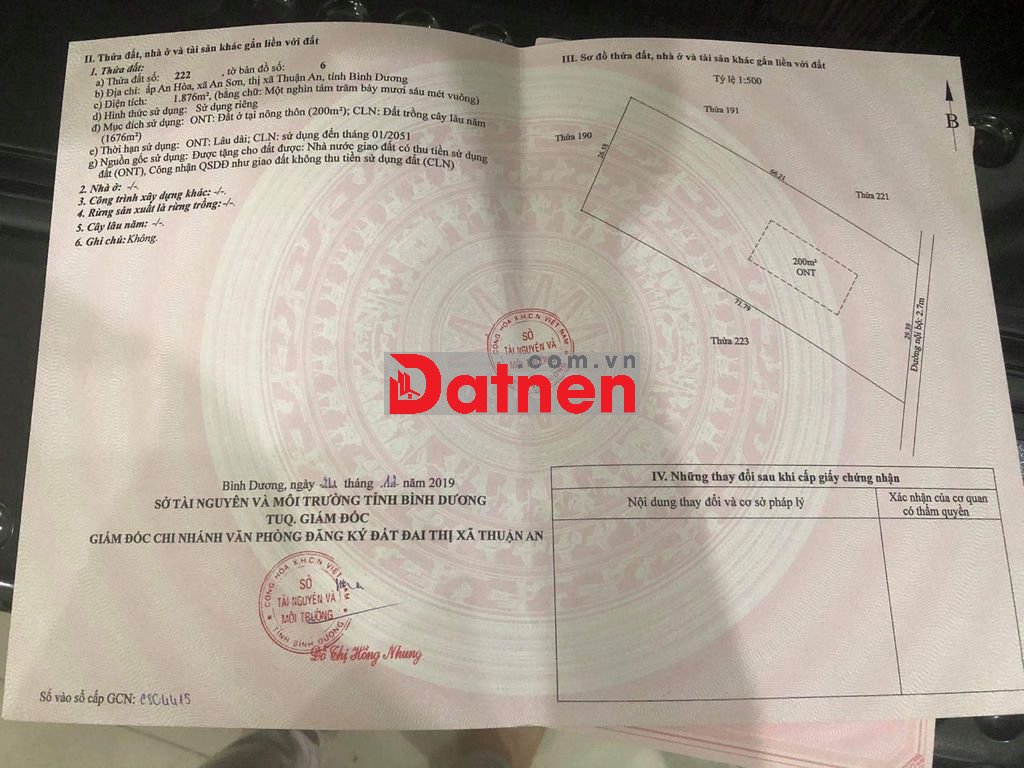 Đất An Sơn, Thuận An, Bình Dương, 1876m2 giá chỉ vài triệu 1m2