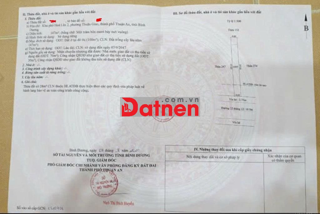 Đất diện tích 147m2 thổ cư 100m2.