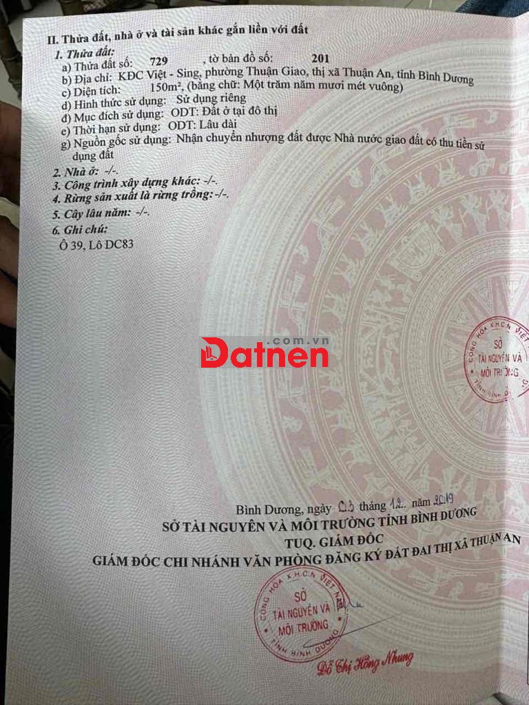 Cần bán lô đất kdc vietsing dt 150m2 full thổ cư