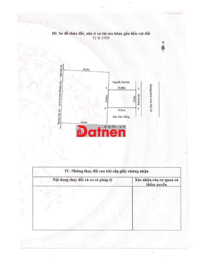 Cần bán lô đất 156m2 mặt tiền đường Mương Nước (Máng Nước), thôn 2, xã Thuỷ Sơn, Thuỷ Nguyên.