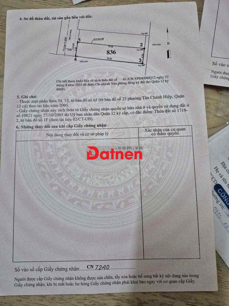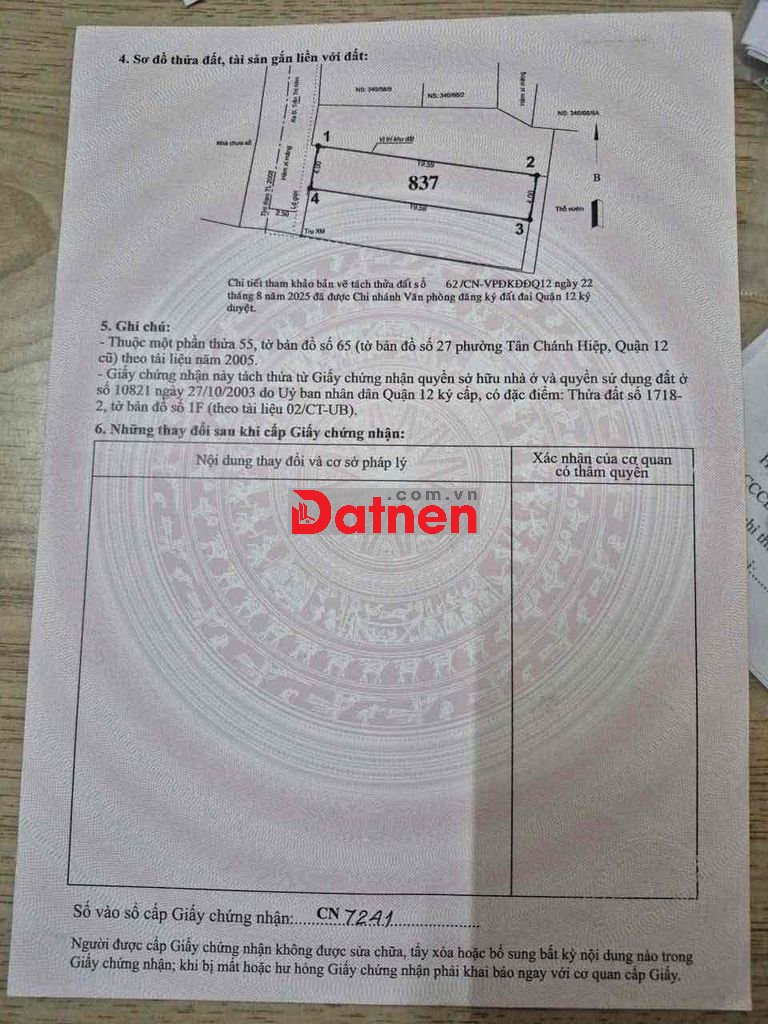 BÁN CẶP ĐẤT P TÂN CHÁNH HIỆP FULL THỔ CƯ MỚI TÁCH SỔ XD TỰ DO