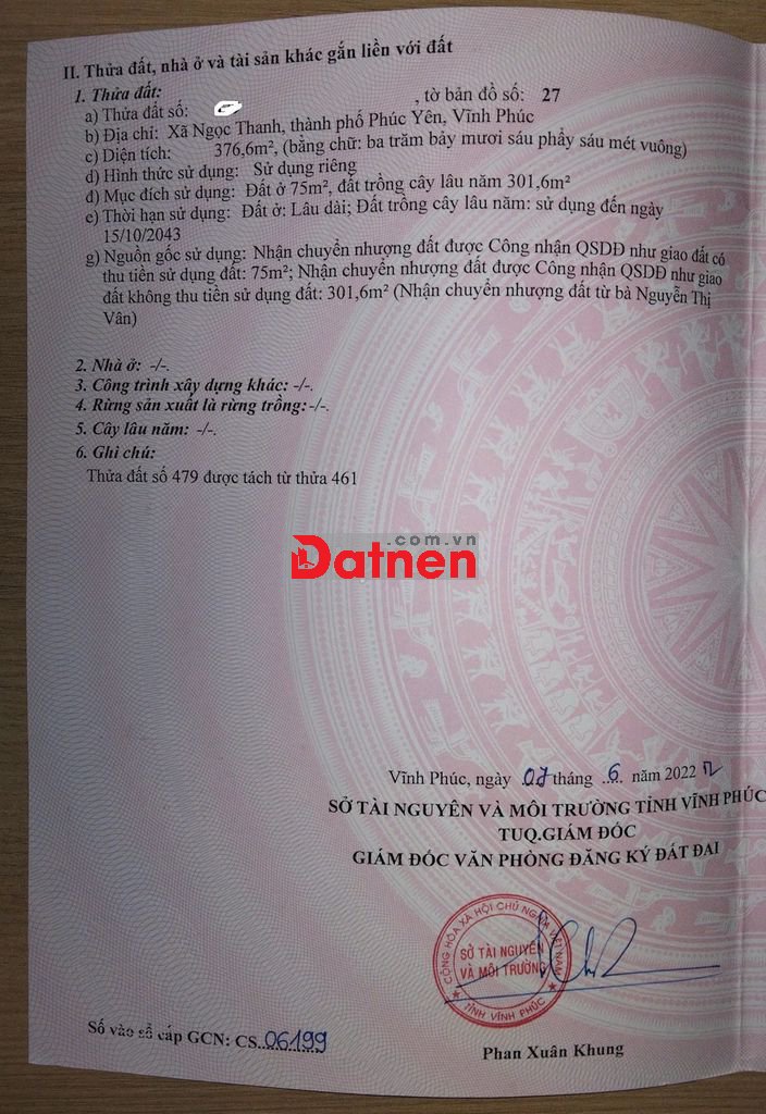 • Pháp lý: Sổ hồng riêng, 75m2 đất thổ cư.