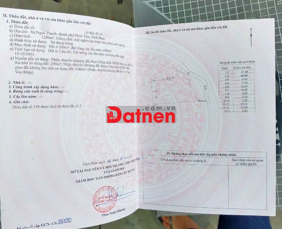 🎉 1280m Trục chính Đất Ngọc Thanh, Phúc Yên, Vĩnh Phúc