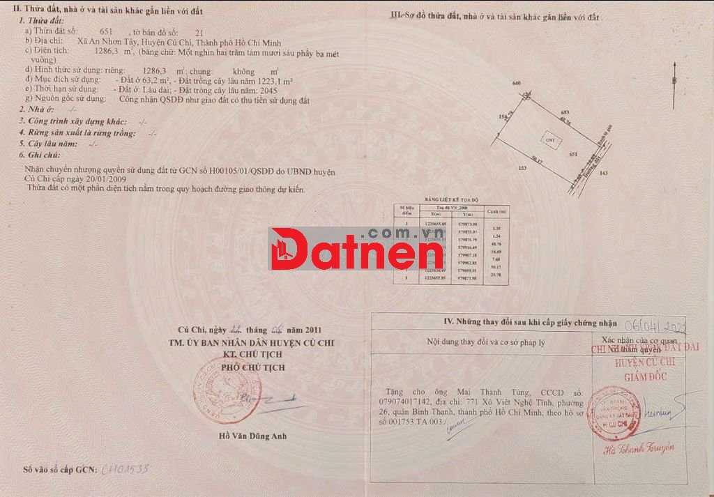 Quý vị đang xem nội dung tin rao "Cần bán gấp 1286.3m2 đất TC mặt tiền đường nhựa Lâm Thị Ngành". Mọi thông tin, nội dung liên quan tới tin rao này là do người đăng tin đăng tải và chịu trách nhiệm. Datnet.com.vn luôn cố gắng để các thông tin được hữu ích nhất cho quý vị tuy nhiên Datnet.com.vn không đảm bảo và không chịu trách nhiệm về bất kỳ thông tin, nội dung nào liên quan tới tin rao này.