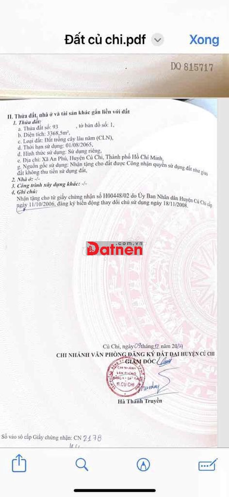 Bán lô đất trồng cây lâu năm diện tích 3368,5 mét vuông tại xã An phú huyện củ chi . Giá 2,5tỷ miễn trả giá