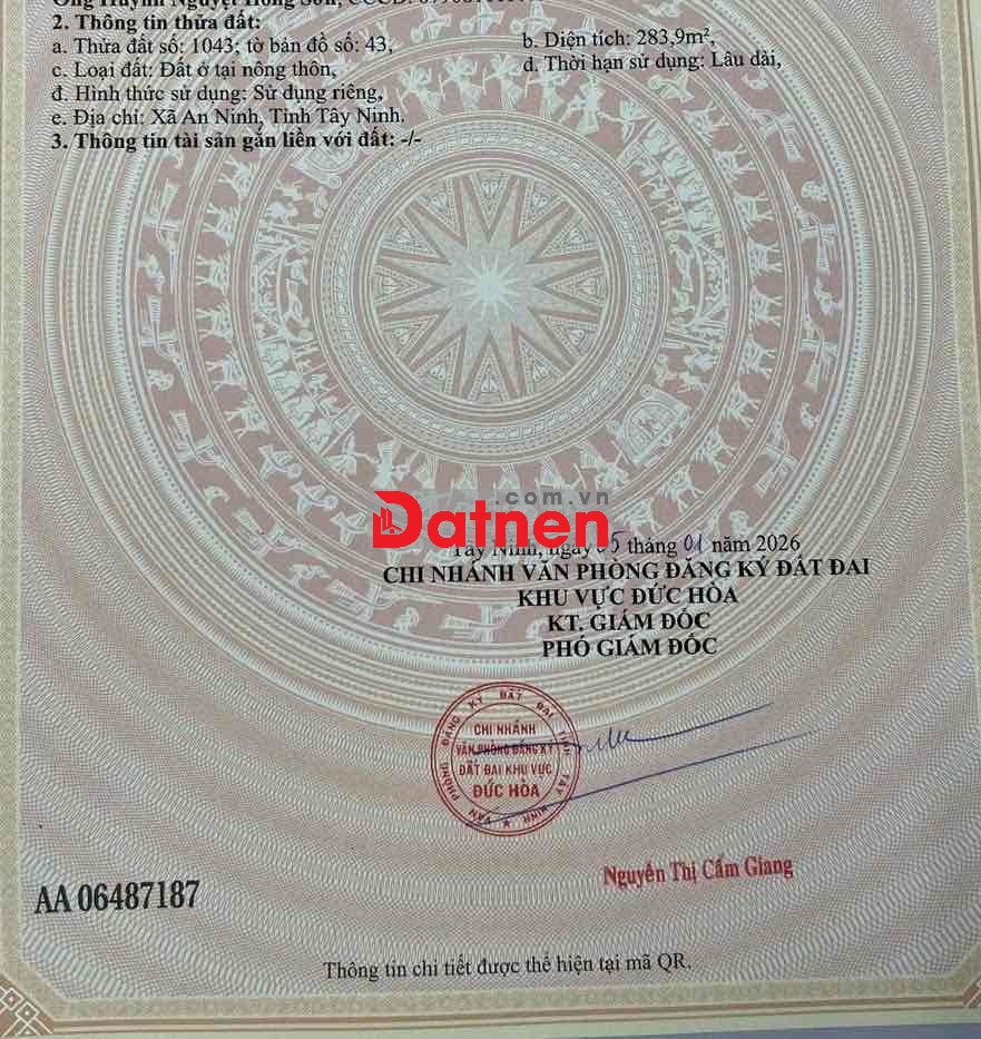 CHÍNH CHỦ CẦN BÁN GẤP LÔ ĐẤT VỊ TRÍ ĐẸP ngay trung tâm ngã 4 Hồ Chí Minh với 821 xã LỘC GIANG, ĐỨC HÒA