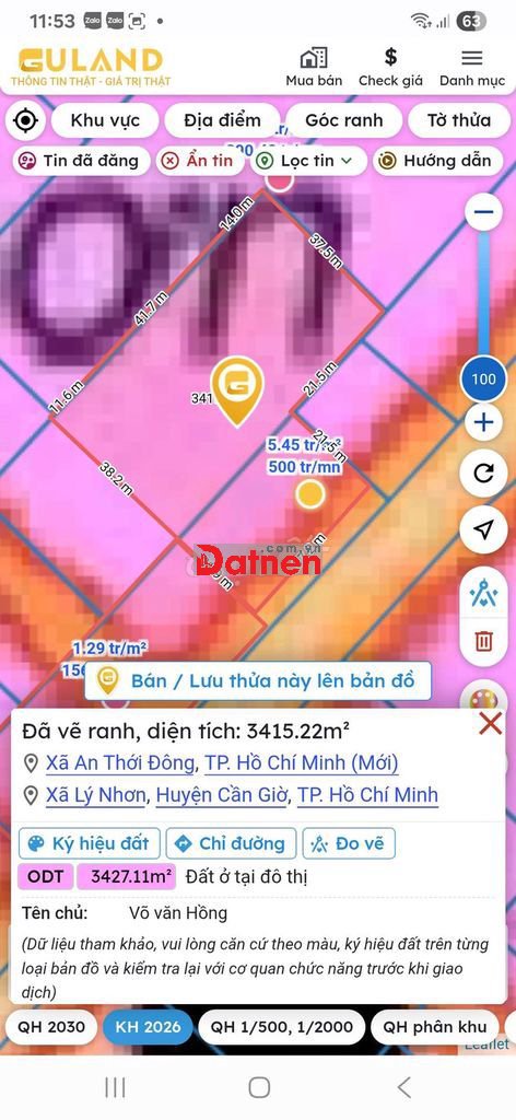 🗺 Quy hoạch: Đất ở (xây dựng được)