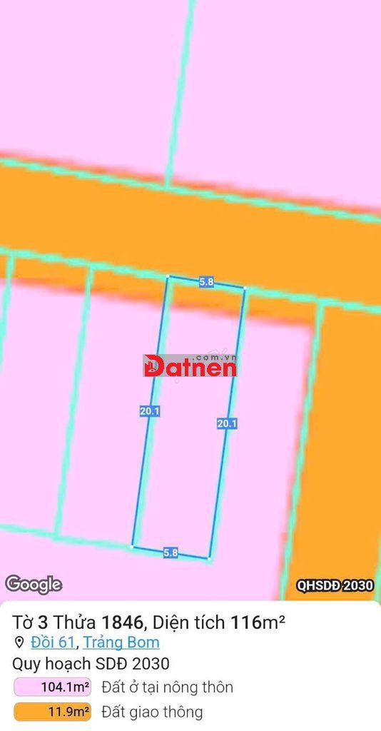 116m2 đất mặt đường nhựa sát vách KCN Bàu Xéo 2 và Tổng kho 620ha