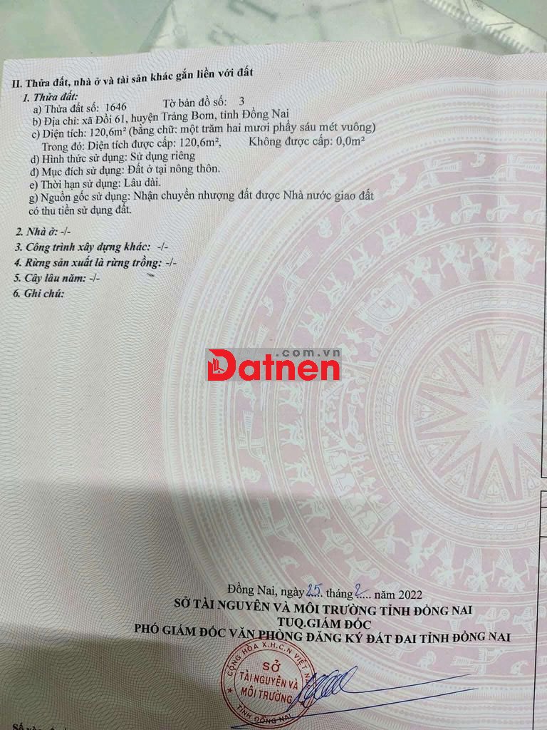 Đất ngộp Xã Đồi 61, 120m2 full thổ ngay KCN Bàu Xéo và TT Trảng Bom