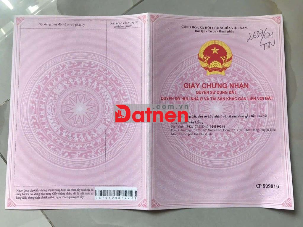 * Hạ giá bán gấp lô đất thổ cư dân cư hiện hữu, xây dựng hoàn công ok, gần chợ đầu mối Hóc Môn