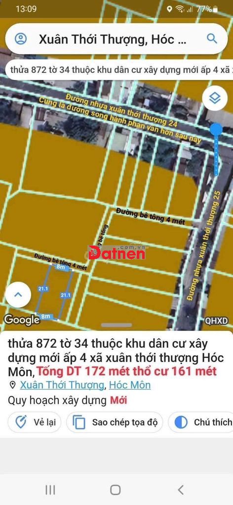 Vị trí gần ngay chợ xuân thới thượng Đường bêtông sạch sẽ xe hơi đến đất xd xây dựng hoàn công liền
