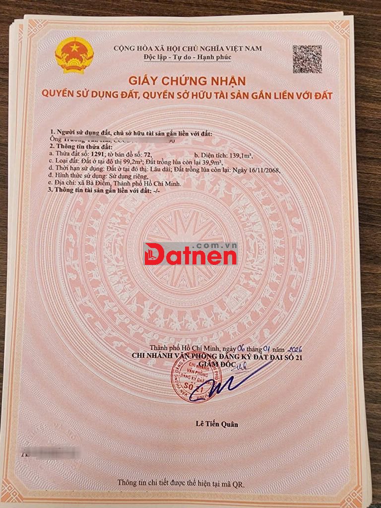 Bán 8 lô mới ra. Đường Bà Điểm 4 gần Phan Văn Hớn và Ql 1A