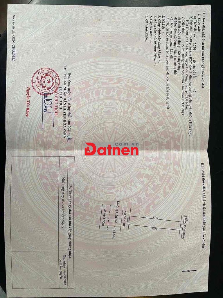 - Vị trí : mặt tiền đường thông kinh doanh Cầu Đỏ - Tuý Loan , tiện ích xung quanh như trường học, ngân hàng, chợ,... bán kính 500 mét