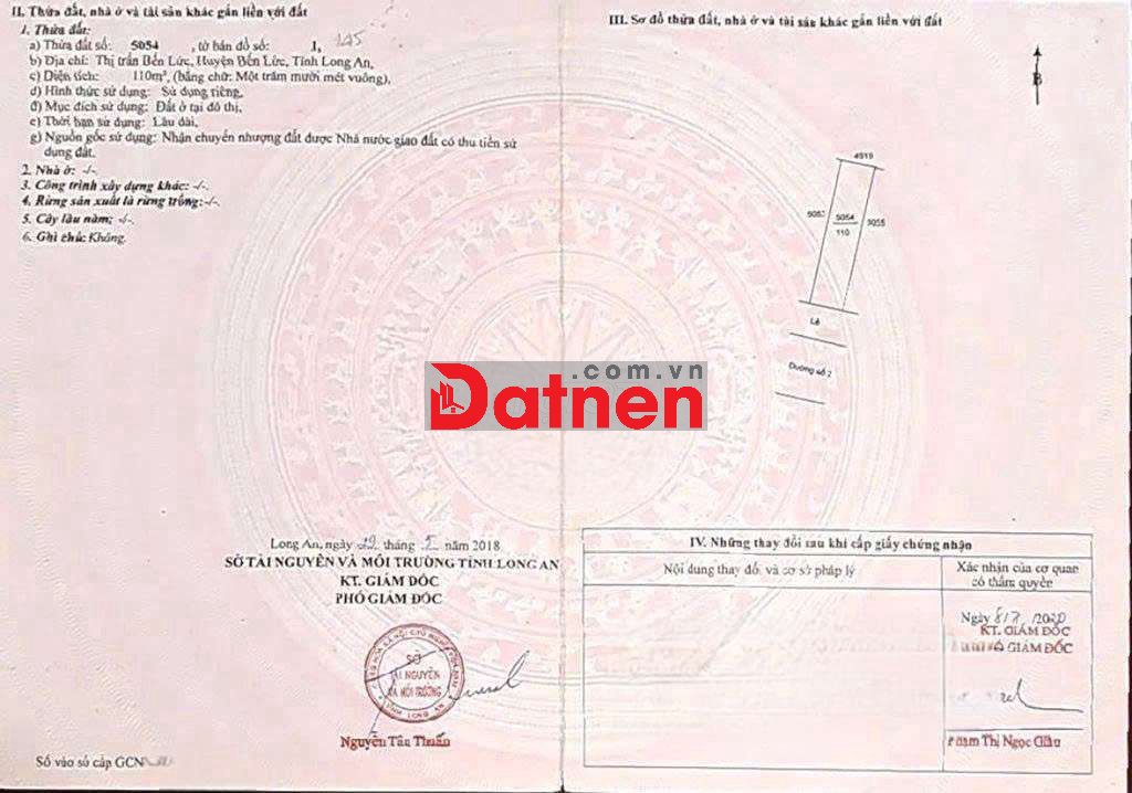 Bán đất Thị Trấn Bến Lức kế Nhà hàng Tràm Chim