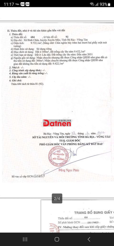 Với 9722m2 đất phủ hồng có 1 phần thổ cư