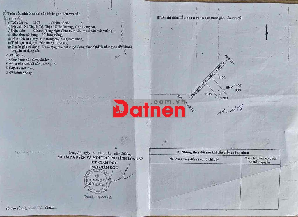 Bán đất xã Thạnh Trị, Tx Kiến Tường cũ