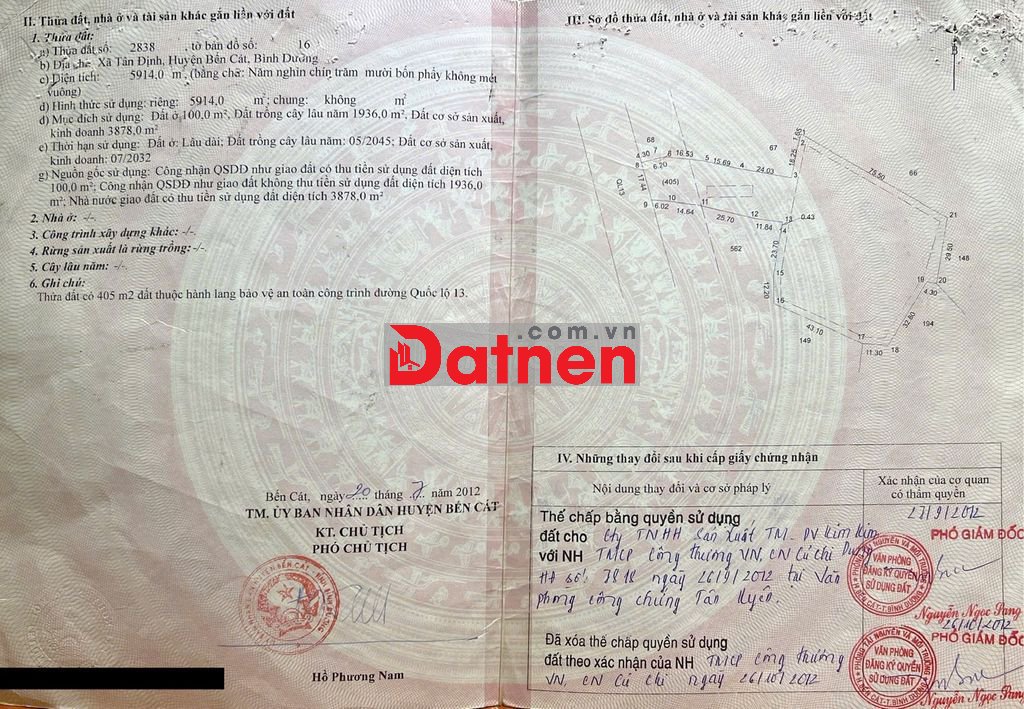 Mặt tiền đường tam thôn hiệp,dt 15x39 sh 976m² full thổ cư, đã trừ hết lộ giới 30m