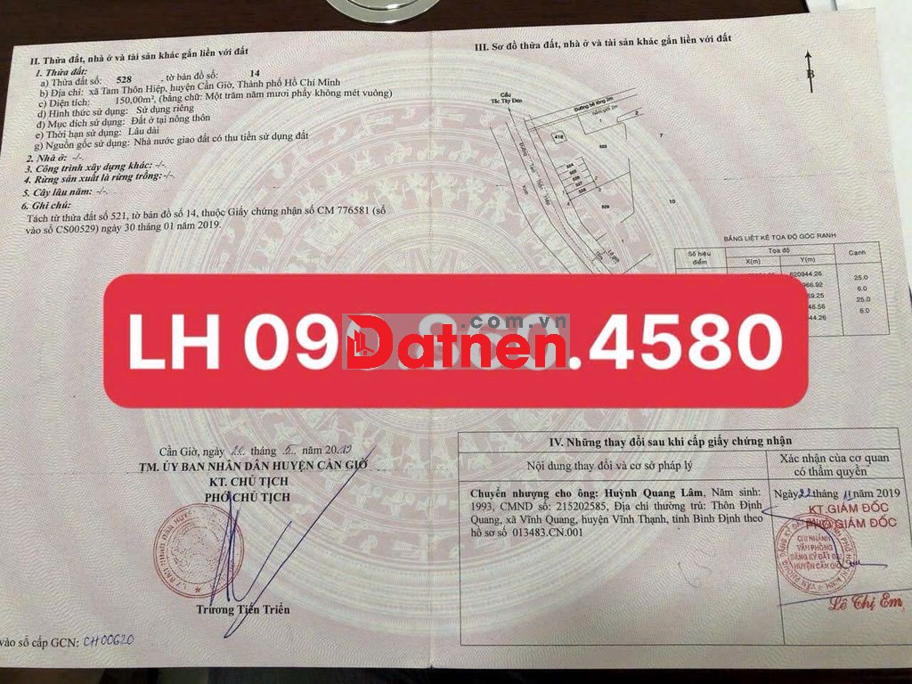 - Diện tích: 150m2 (6m x 25m) full thổ cư.