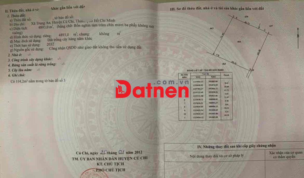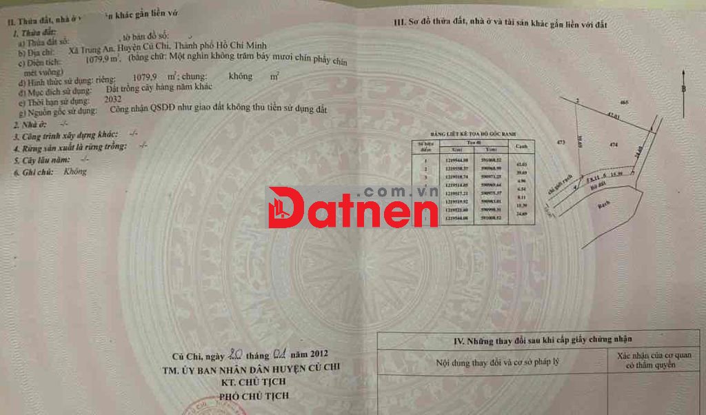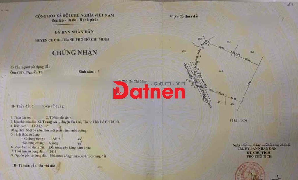 CCG Bán Lô Đất Trồng Cây Hàng Năm Thuộc Xã Trung An , Huyện Củ Chi ( cũ )