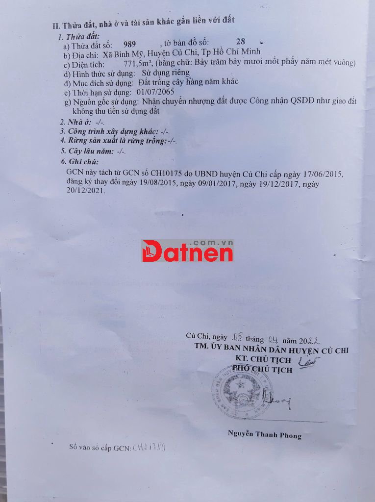 BÁN ĐẤT XÃ BÌNH MỸ - TP HỒ CHÍ MINH