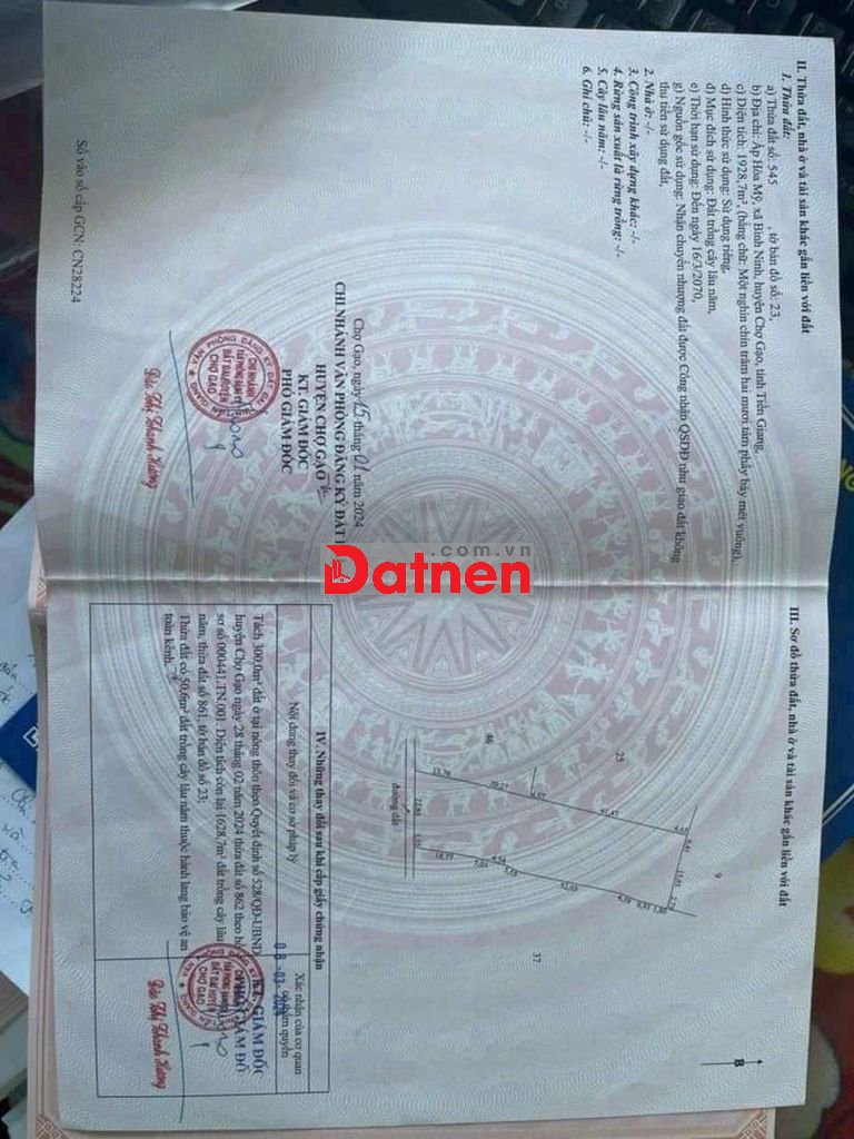 DT: 1928m2 .có 300m2 thổ cư còn lại cây lâu năm