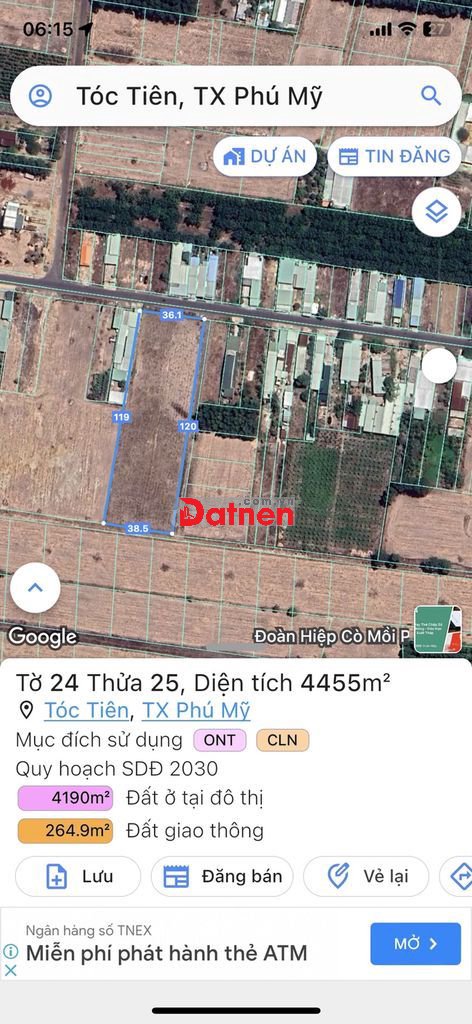 - Lô 40x200m=8229m² chưa thổ cư giá tại đường Mỹ Xuân Tóc Tiên giá 26 tỷ giảm còn 15 tỷ. tiện phân lô bán nền