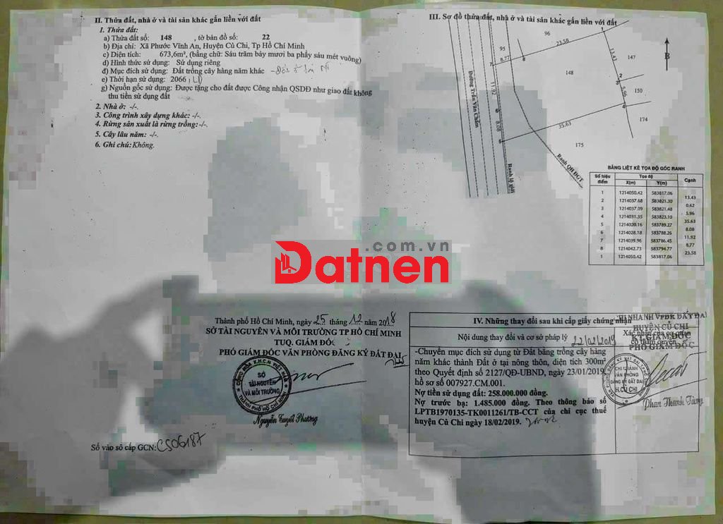 Bán đất mặt tiền trần văn chẩm dt=20×35, thổ cư 300m, vị trí đẹp, đất cách đường tỉnh lộ 8 khoảng 400m, đối diện dự án trung tâm thương mại, tiện ích đầy đủ, gần thị trấn củ,chi